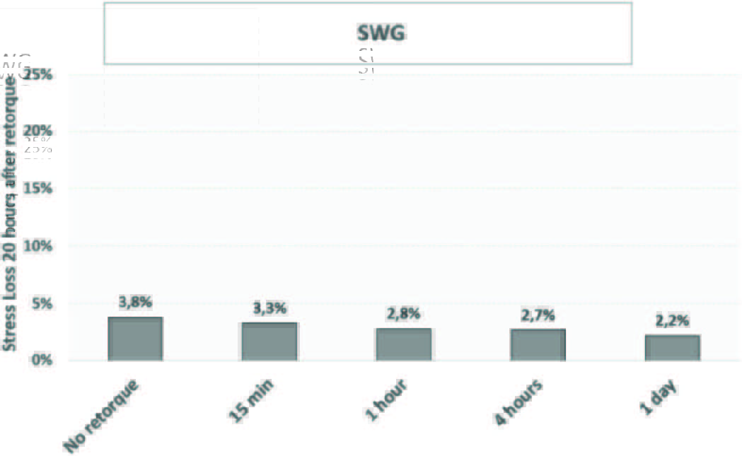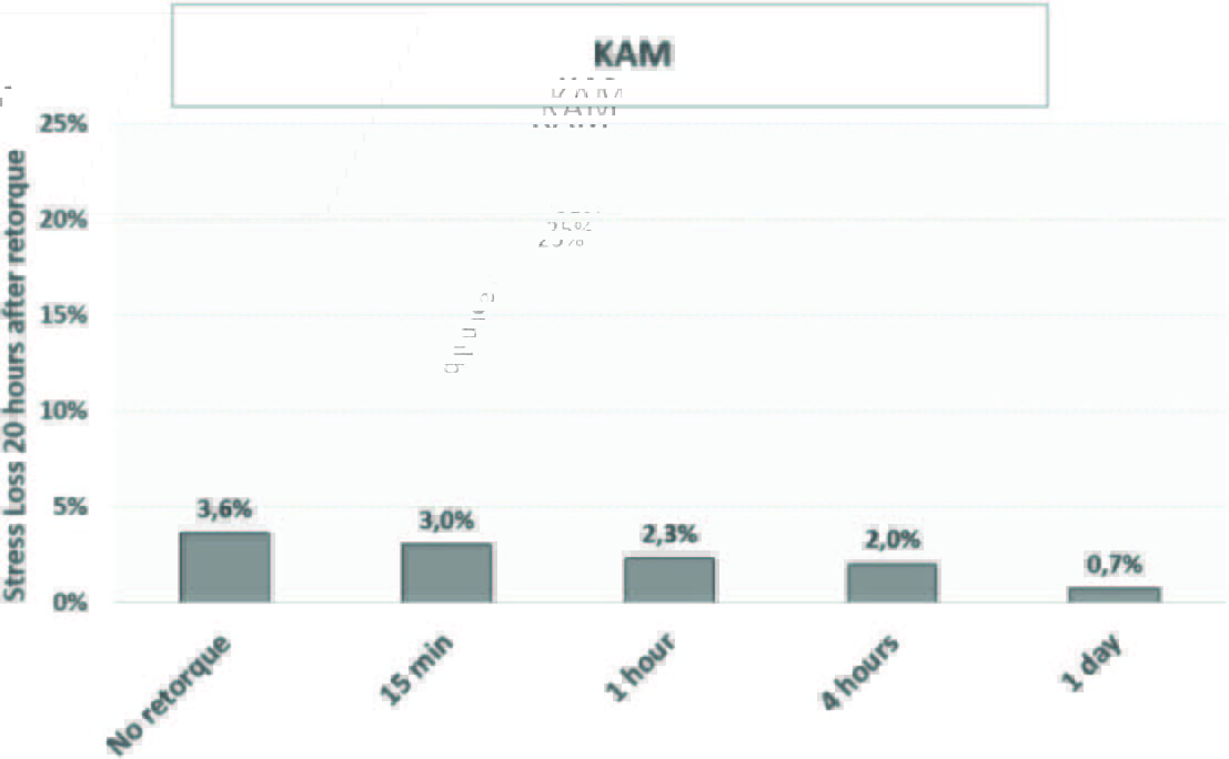 Metallic gaskets, inherently less susceptible to relaxation effects, as indicated by the study, showed only marginal stress loss differences across various dwell times (including no retorque at all) at ambient conditions. It is important to note that Figure 2 and 3 illustrate this phenomenon for spiral wound gaskets (SWG) and kamprofiled gaskets (KAM) under these conditions. Kamprofiled gaskets, with a 24-hour dwell time before retorque, exhibit less than 1% overall preload loss, making them one of the tightest overall sealing options. However, it is essential to consider that relaxation is influenced by temperature, and these results reflect ambient conditions.