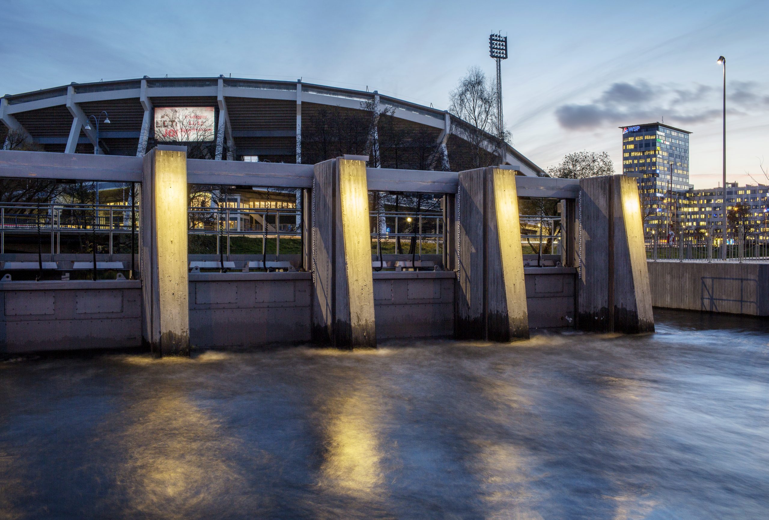 Tammerkoski rapids, Tampere, Finland (completed in 2012). The wooden floodgates had to be replaced, and at first carbon steel was envisaged. But in the end Outokumpu’s Forta LDX 2101 lean duplex grade was applied in the main structural parts of the gates.